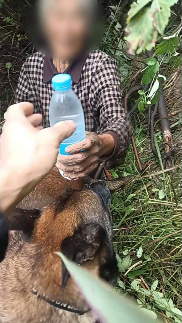 9月27日,郧阳区柳陂镇腰岭村村民刘某焦急报警,称75岁母亲张某自9月25日独自外出后失联,多方寻找无果。接警后,郧阳公安警犬训导员赵宗波、李俊纬立即携带搜捕犬“追风”赶赴现场。了解到张某日常使用的枕头罩留存明显气味,赵宗波迅速将其作为核心嗅源,让“追风”反复嗅闻、建立气味记忆,随后与家属商定“分路搜救”方案。民警带警犬沿山间小径、荒坡等偏僻区域排查,家属沿常走的砍柴路线寻找,扩大搜救覆盖面。